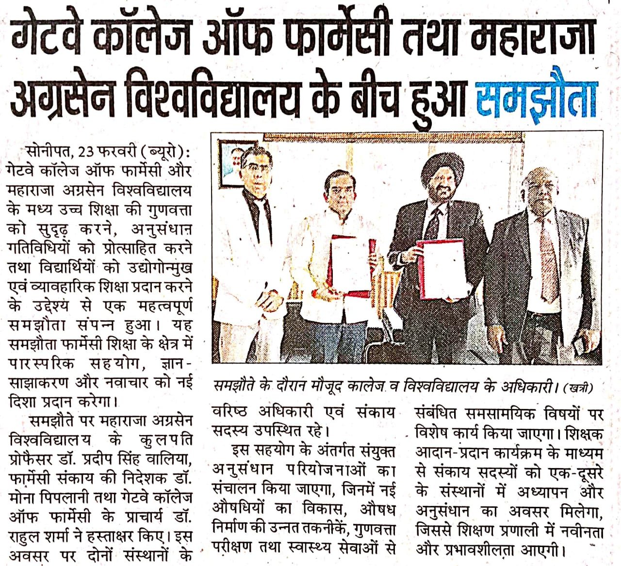 गेटवे कॉलेज ऑफ फार्मेसी और महाराजा अग्रसेन यूनिवर्सिटी के बीच अकादमिक उत्कृष्टता का समझौता हुआ Read more