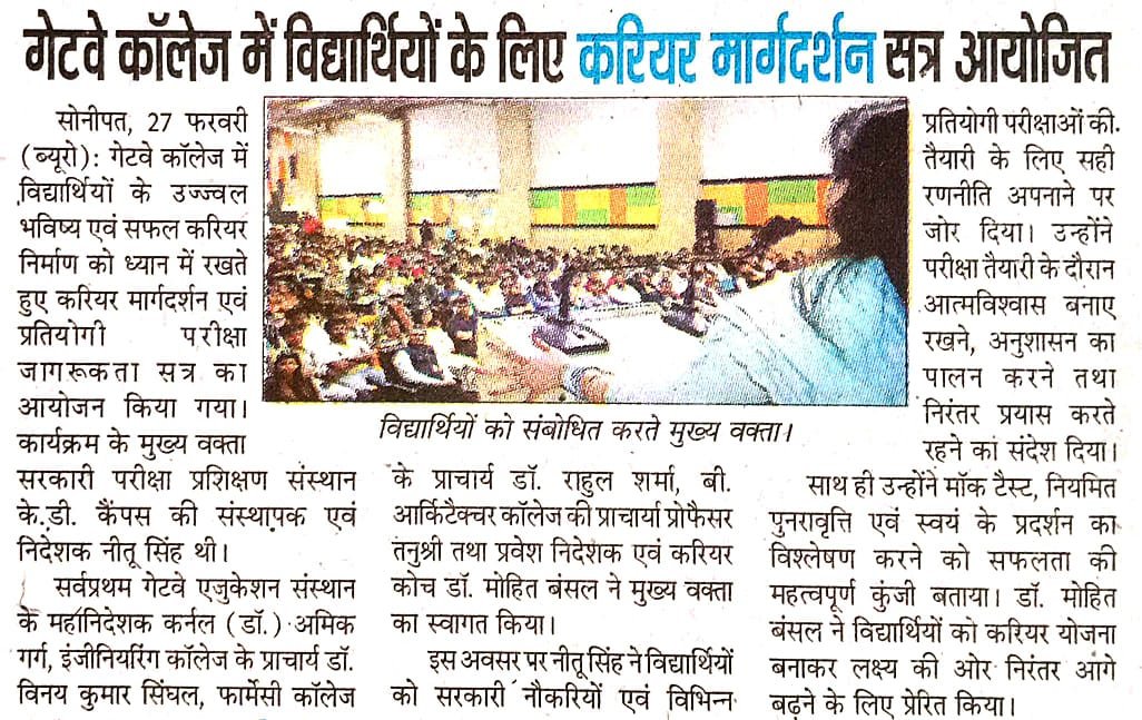 केडी कैंपस की संस्थापक सुश्री नीतू सिंह ने छात्रों को सरकारी नौकरी के विकल्पों के बारे में मार्गदर्शन दिया। Read more