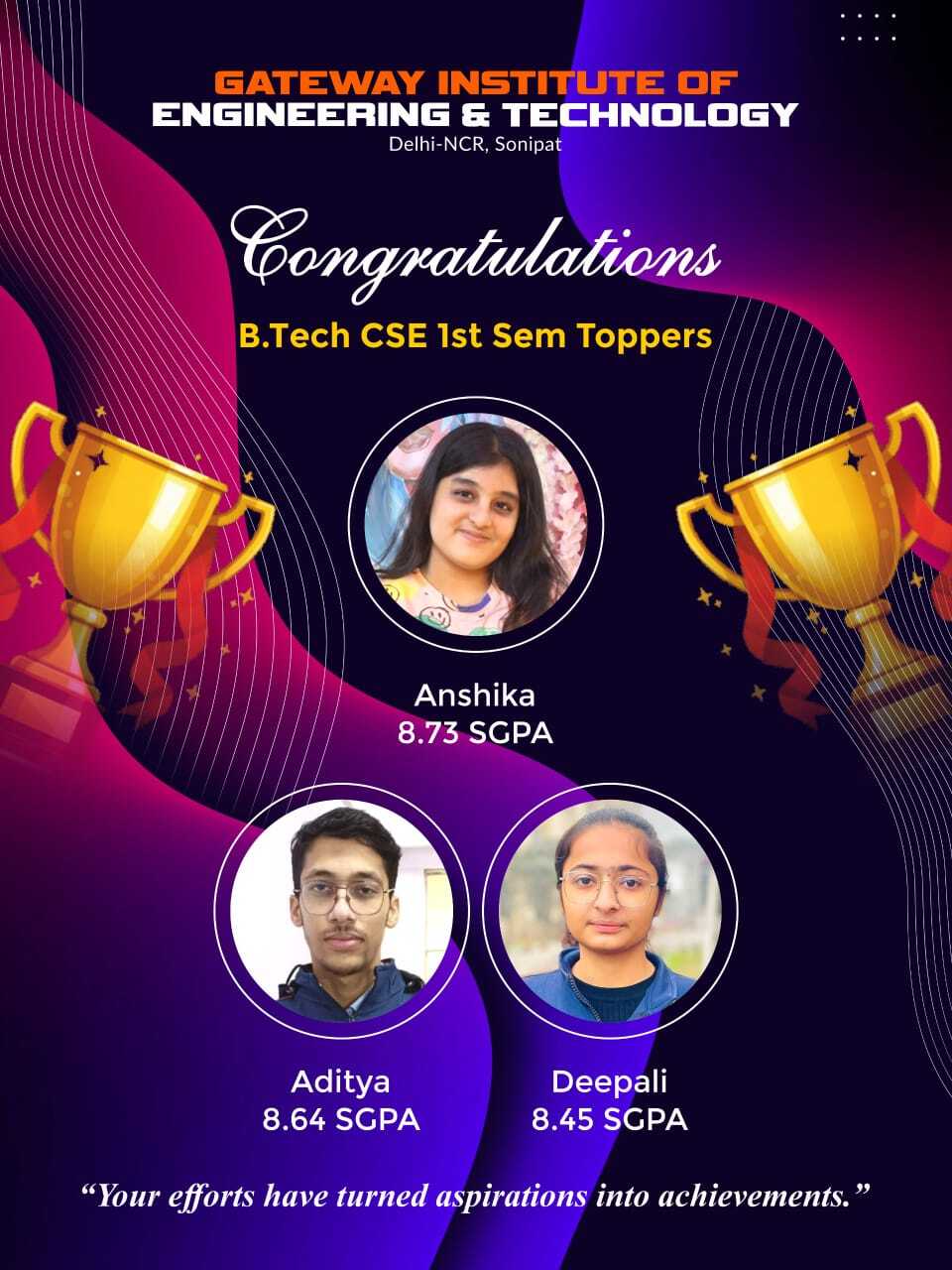 Celebrating Academic Excellence | Department of Computer Science The *Department of Computer Science* at *Gateway Institute of Engineering and Technology* proudly announces the outstanding academic ..Read more