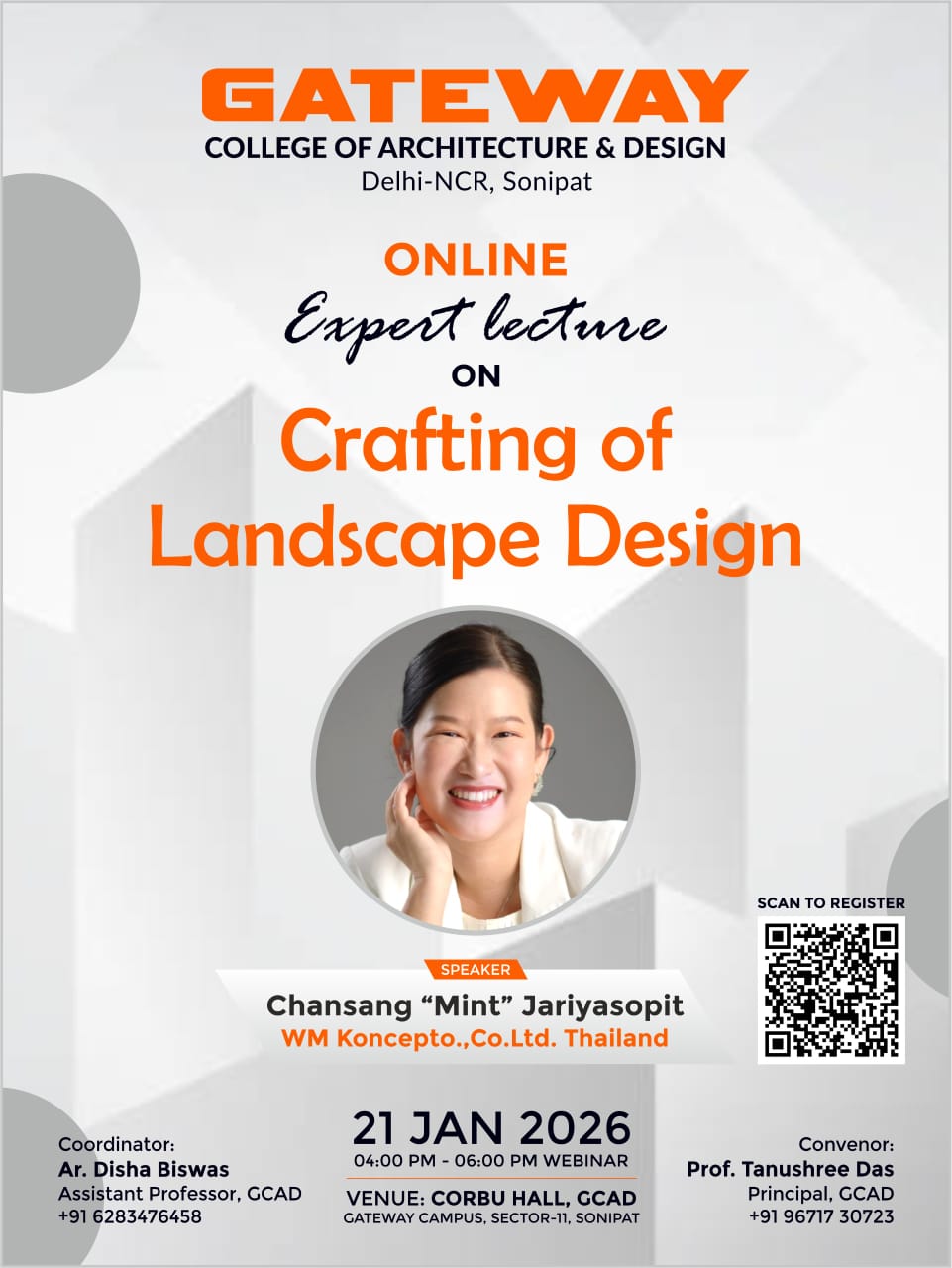 GCAD GOING TO ORGANIZE GUEST LECTURER ON CRAFTING OF LANDSCAPE DESIGN Gateway College of Architecture and Design, Sonipat cordially invites students and faculty members to a Guest Lecture on * ..Read more