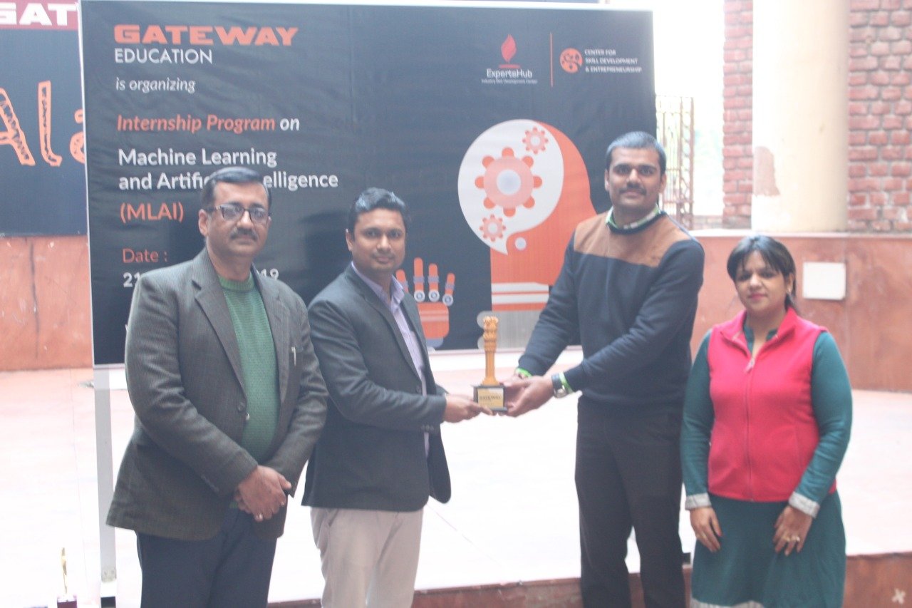 Gateway Education’s Center for Skill Development and Entrepreneurship (CSDEn) in collaboration with Expertshub Industry Skill Development Center has organized a Machine Learning/ Artificial Intelligence (MLAI) internship. This 8 days of total 70 hours intensive certified internship from 21 - 28 Jan 2019 was India’s first ever coursework based Internship focused on Machine Learning, Natural Language Processing (NLP), Chatbots, Deep Learning Tools and Techniques. With 50 hands-on-training hours and 20 hands-on hours on project/case assigned, the students were introduced to the world of ML & AI technologies and were equipped to identify the potential problems and provide a better platform to bring technological solutions. Since 35% of the program was based on the solution/project presentation, the students have also learned from other fellow participants about the projects they are working on and vice versa.