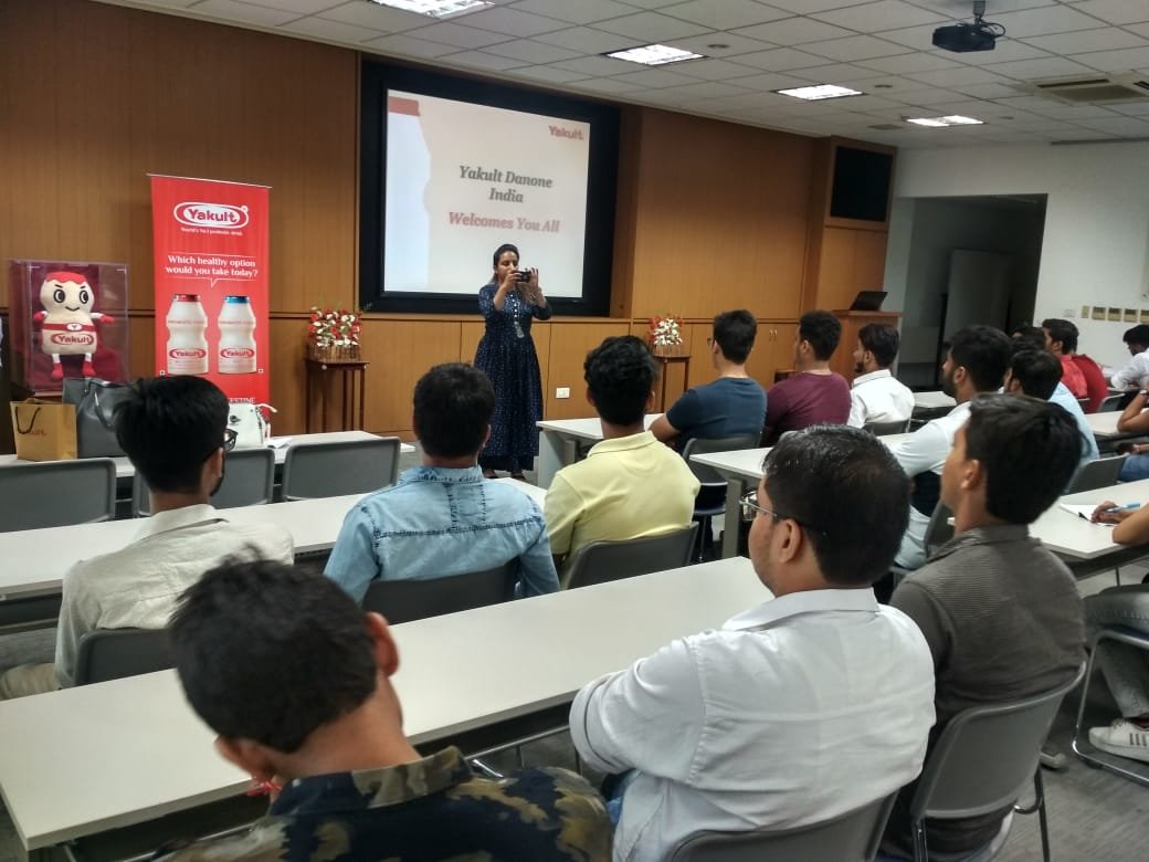 Ms. Yamini presented a presentation before students where she told about the history, benefits of product, distribution channel etc. of the company. Ms. Yamini told that this is the only plant of yakult in India.