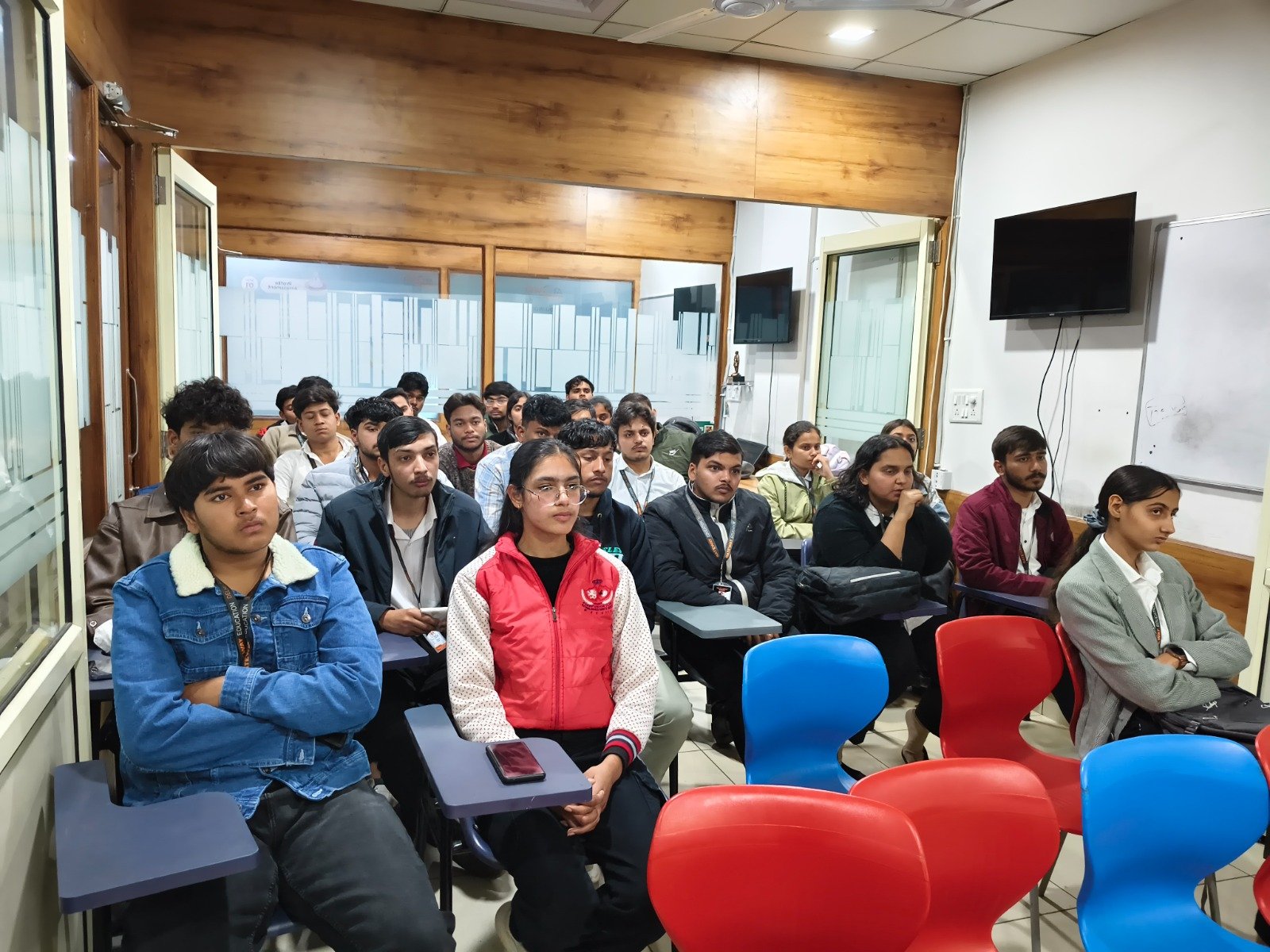 During the visit, Mr. Bhavtosh Sisodiya, an industry expert from Croma Campus, conducted an interactive doubt-clearing and training session, where students explored various aspects of Data Analytics.