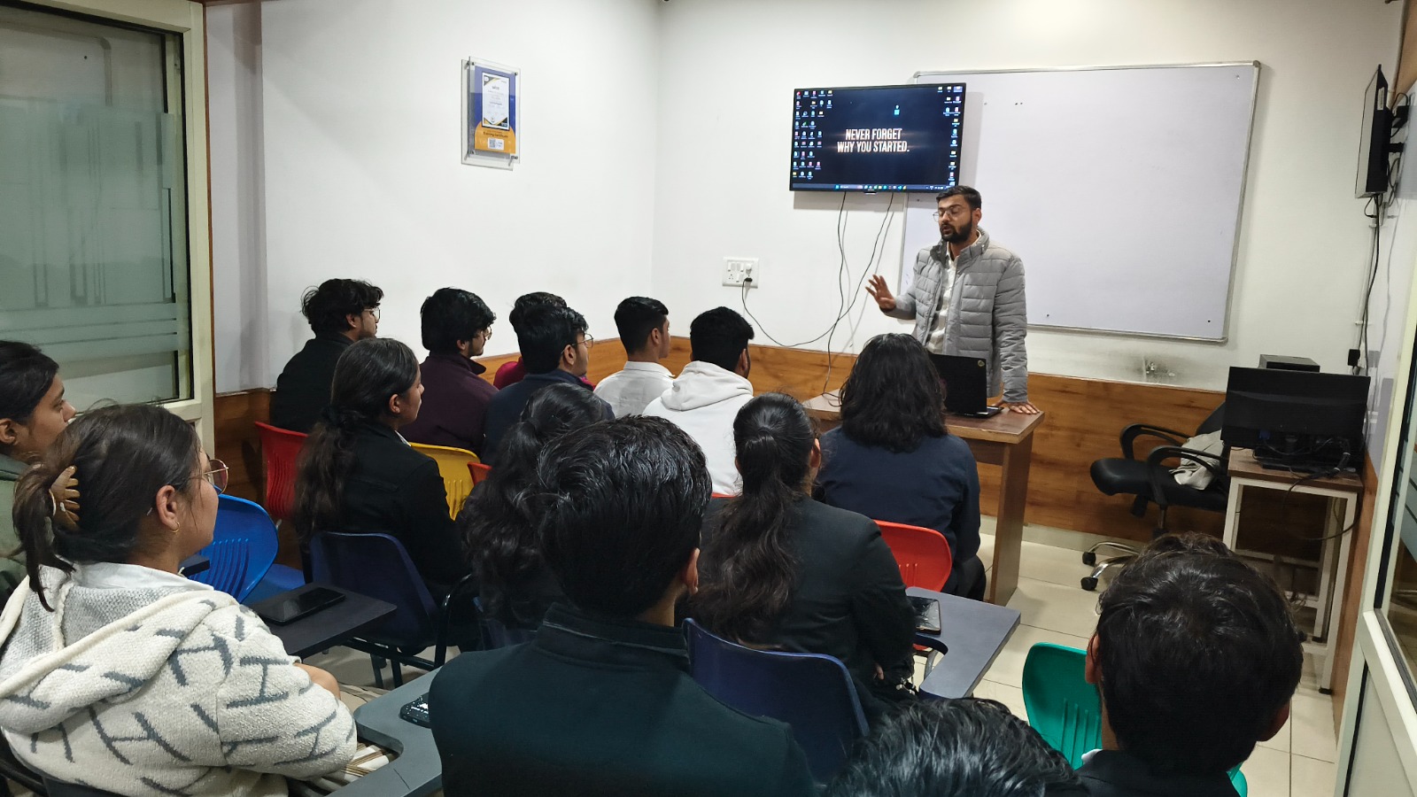 During the visit, Mr. Bhavtosh Sisodiya, an industry expert from Croma Campus, conducted an interactive doubt-clearing and training session, where students explored various aspects of Data Analytics.