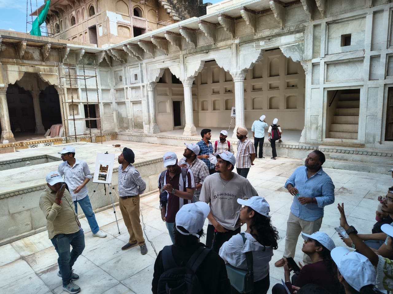 Students explored the rich history and architecture of Narnaul’s monuments, while also gaining insights into conservation ethics. They had hands-on experience with traditional conservation methods, including preparing lime mortar using organic ingredients.