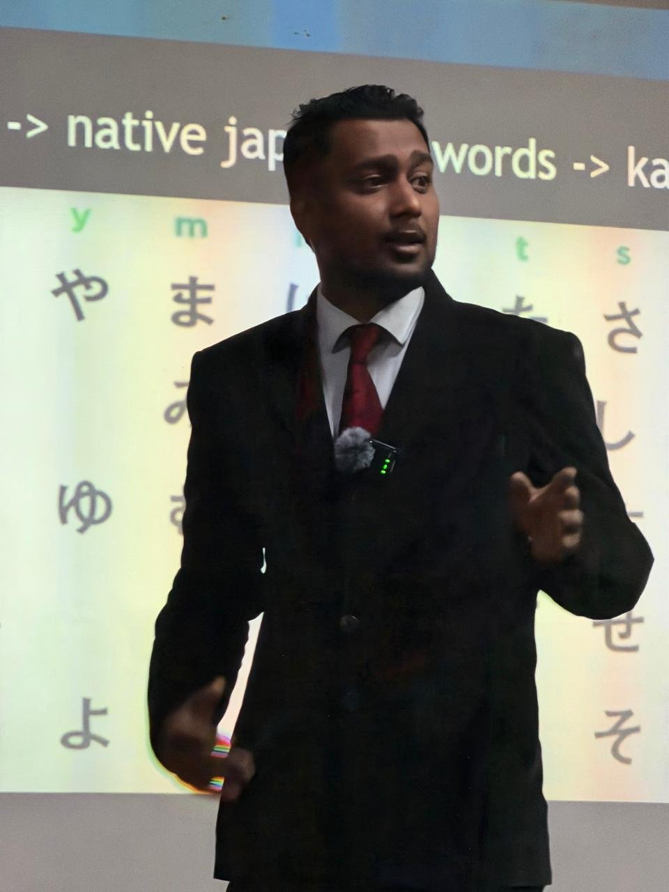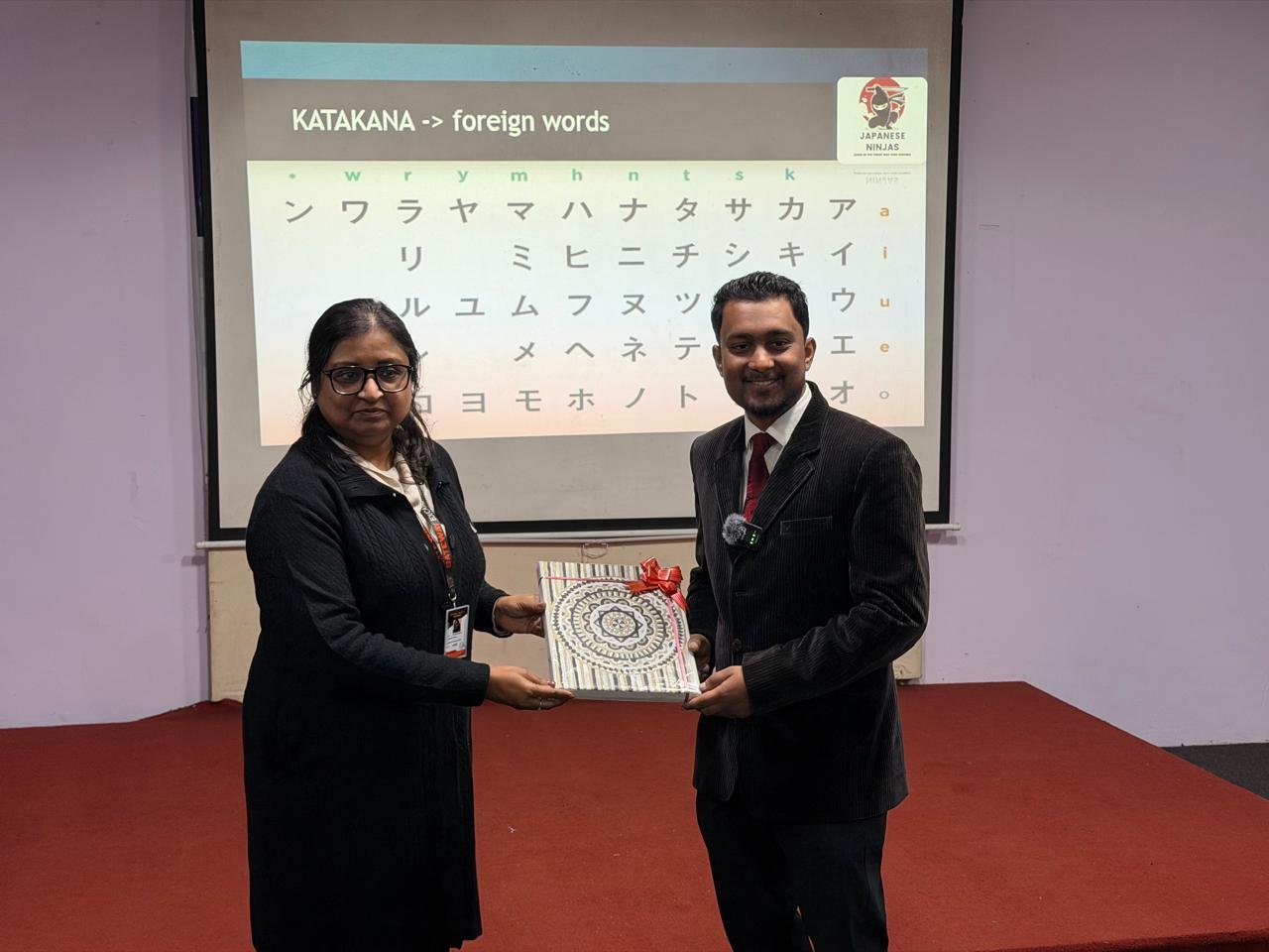 The session was led by Mr. Atishaya Jain, Founder of Japanese Ninja, who introduced students to the fundamentals of the Japanese language while highlighting its growing relevance in global academics, professional opportunities, and cultural exchange.