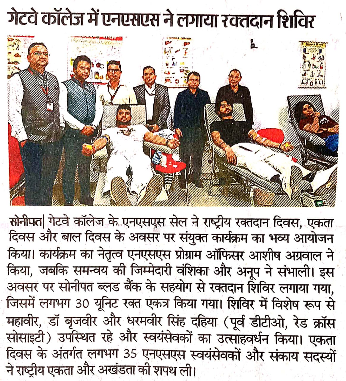 NSS CELL OF GATEWAY EDUCATION ORGANIZED BLOOD DONATION CAMP