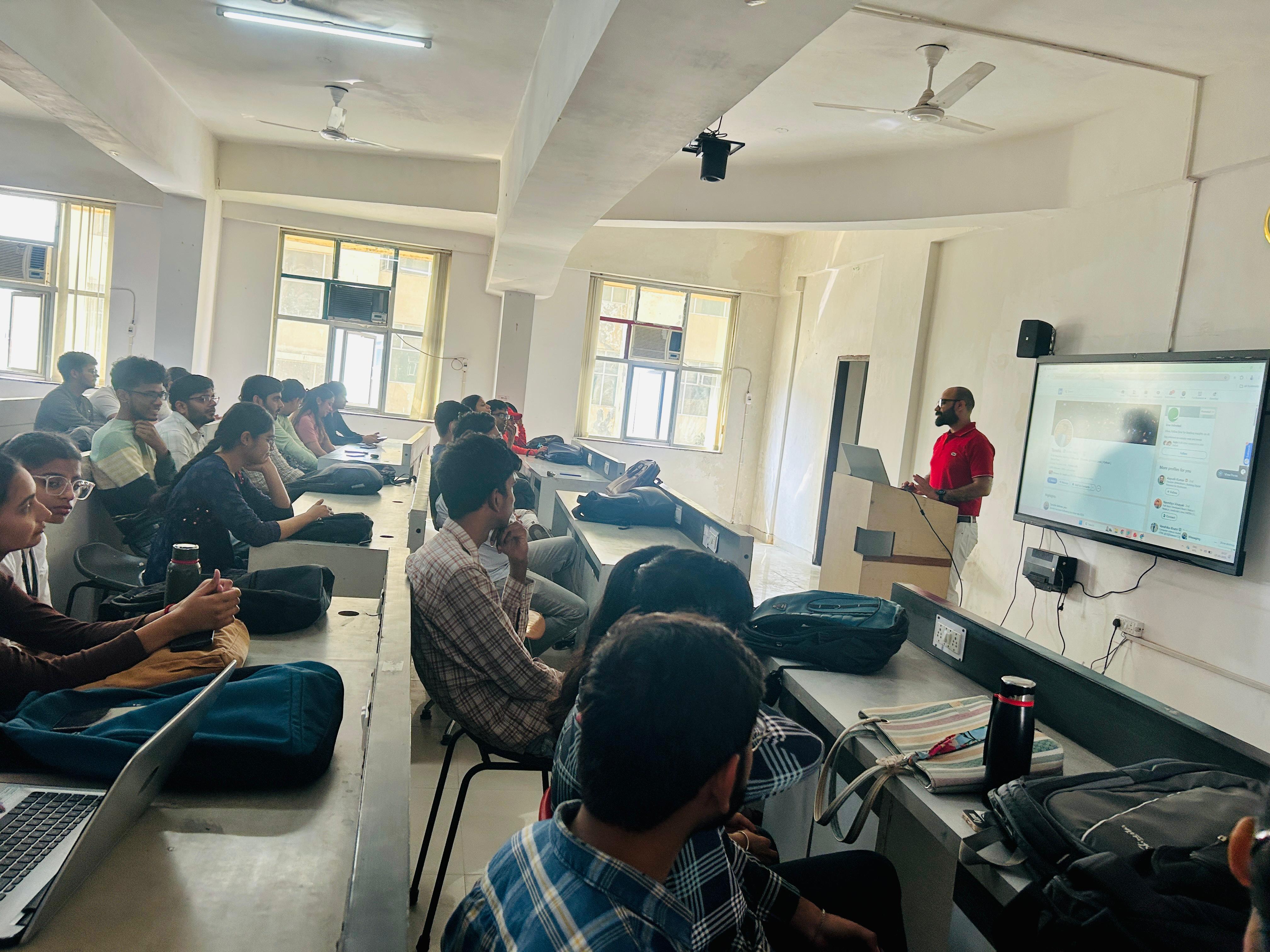 An introductory session titled “Career Launchpad: Build Your Brand – Beat ATS – Excel on LinkedIn – Leverage AI – Network Smart” was organized by the Placements Cell of Gateway Education. The session was conducted by Mr. Vikas Nain, Co-founder of The Triad, who guided students on personal branding, ATS strategies, LinkedIn optimization, AI tools, and professional networking. Over 100 final and pre-final year students participated actively.
